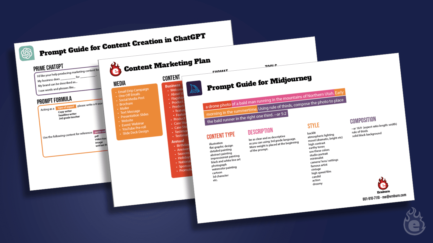 Use these references to quickly create on-brand marketing content using AI tools! And here are some helpful videos for ChatGPT and MidJourney